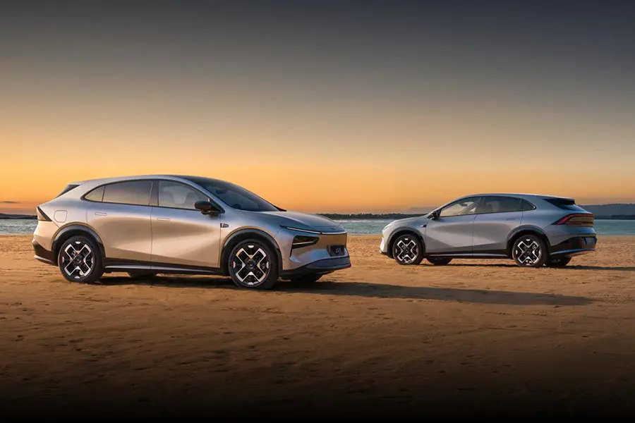 از دستگیره‌های درِ مخفی‌شونده برای کاهش مقاومت هوا گرفته تا دوربین‌های جانبی ۳۶۰ درجه روی گلگیرها، همه جزئیات در خدمت زیبایی و کارایی‌اند. رینگ‌های آلیاژی خاص با طرح «X» در دو سایز ۱۹ و ۲۰ اینچ و تایرهای اسپرت (235/55 R19 و 255/45 R20)، ظاهر پویای خودرو را تکمیل می‌کنند.